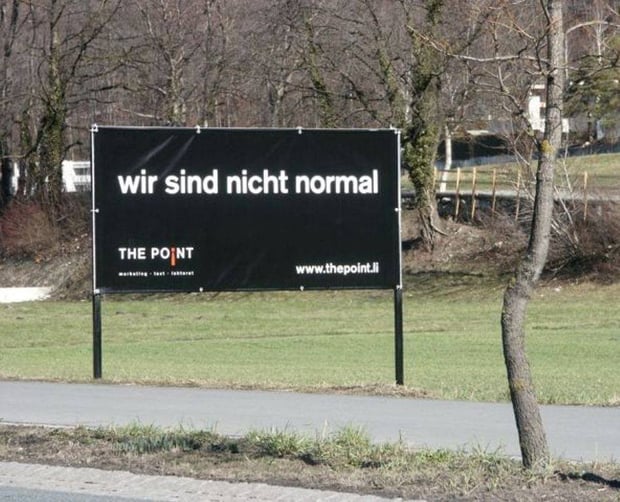 Unsere Unternehmensphilosophie ist kurz und bündig: Wir sind nicht normal! Diesem Credo wollen wir bei der Umsetzung von Kommunikationsmassnahmen Rechnung tragen. Nur wer nicht normal ist und gegen den Strom schwimmt, fällt in der Masse auf.